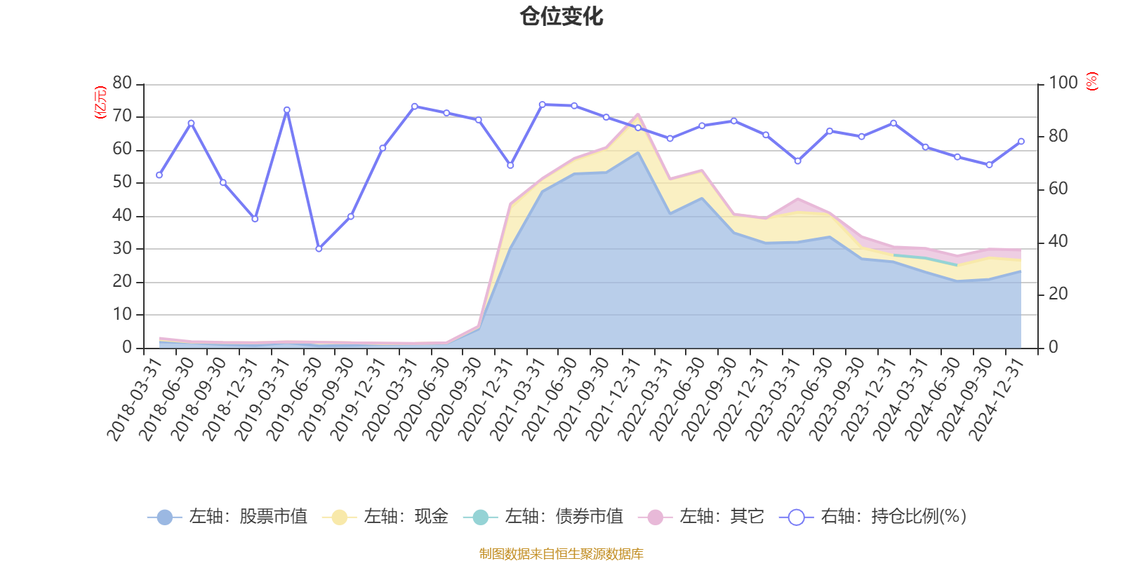 据定期报告数据统计,近三年平均股票仓位为78.79%,同类平均为79.89%。2021年一季度末基金达到92.29%的最高仓位,2019年上半年末最低,为37.67%。